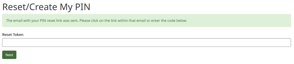 3. An email with a PIN reset link and token will be sent to the email address associated with your library card account. Select the PIN reset link in the email or copy and paste the reset token into the Reset/Create My PIN form.