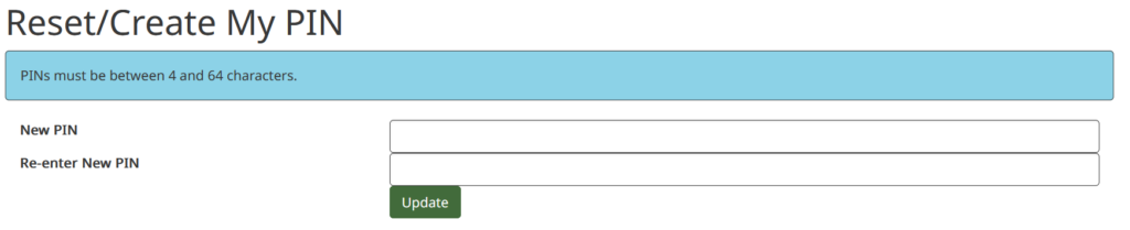 4. In the next screen, you will be prompted to enter a new PIN. Once you have entered the new PIN twice, select the Update button.